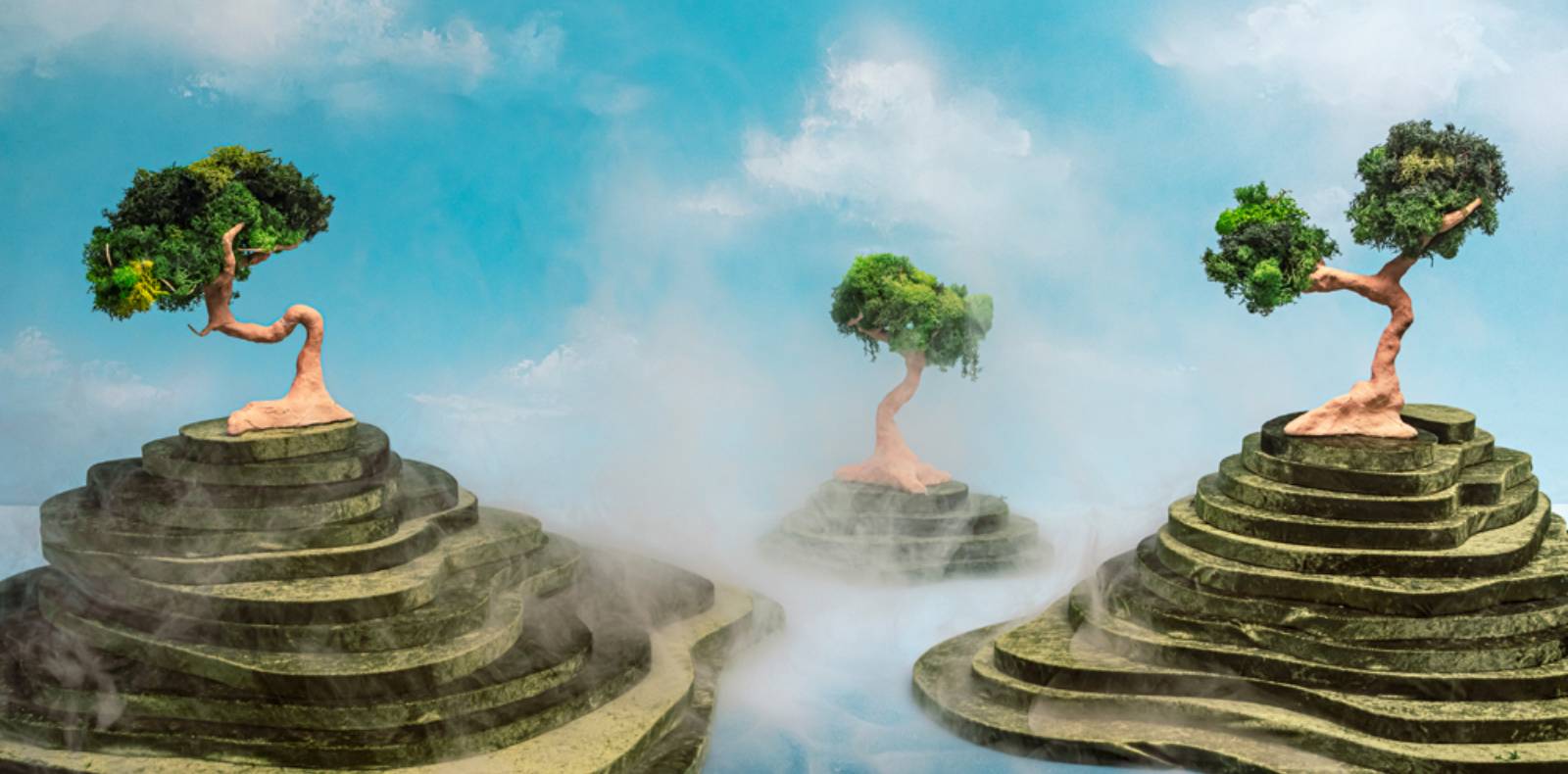Dans les années 80, il initie la série Essere fiume (Être fleuve) : des pierres taillées comme celles ramassées le long des torrents, la main de l’artiste reproduisant l’action du fleuve sur la vie minérale. “Ce n’est plus aussi facile de trouver des pierres. Il faut un permis pour les ramasser au bord de l’eau. Surtout, j’ai besoin de roches très homogènes pour ne pas qu’elles cassent lorsque je les installe sur les arbres.” Leurs branches accueillant une pierre évoquent une figure humaine. “La pierre est le cerveau de l’arbre. Le cerveau est associé à la réflexion logique représentée par la géométrie et les mathématiques. Or, une pierre est constituée de cristaux, et donc de formes géométriques et mathématiques.”