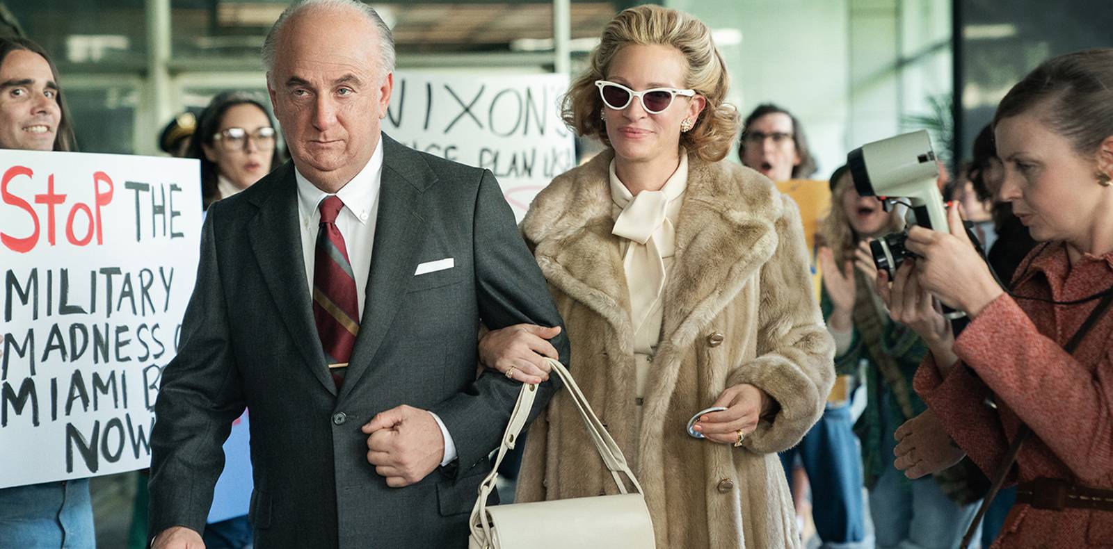 C’est à cette femme de caractère que la série a choisi de rendre hommage la mini-série, diffusée sur Apple TV+, à raison d’un épisode par semaine. Le couple Mitchell est fabuleusement interprétée par Julia Roberts et Sean Penn, méconnaissable avec son crâne chauve et ses prothèses qui lui font ressembler au procureur général. La performance au sommet des deux stars américaines offre une série magistrale entre humour et politique.