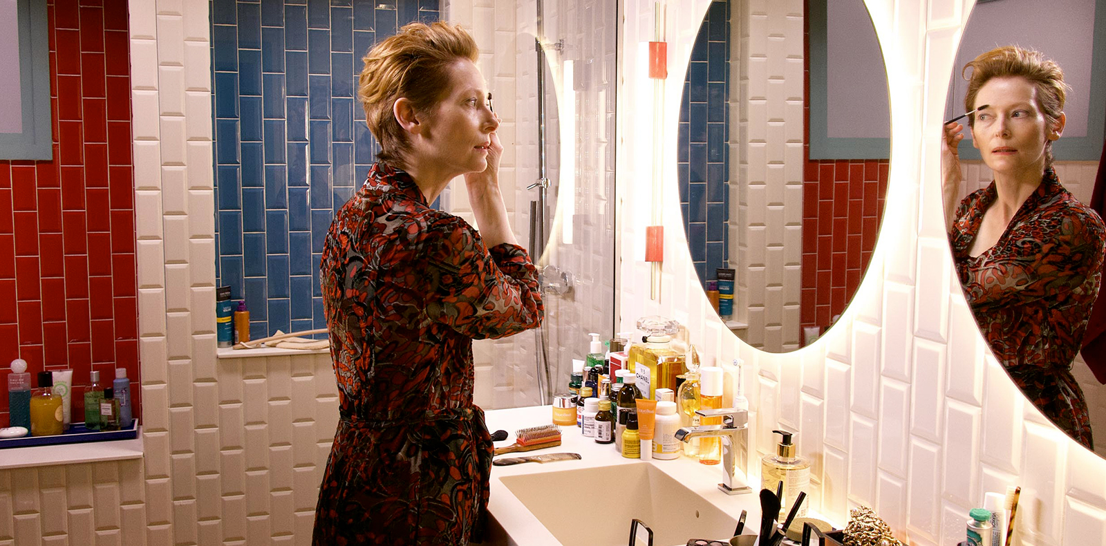 Avec cette réinterprétation, le cinéaste espagnol le plus célèbre au monde reste très littéral tout en prenant certaines libertés. À l’origine contrainte de rendre à l’homme qu’elle aime les lettres qu’ils se sont écrit, l’héroïne, chez Almodóvar, fait face aux mêmes mésaventures mais transposées version 2021, où la correspondance devient un ensemble de bagages Chanel et les conversations téléphoniques passent par le branchement d’écouteurs sans fil. Interprétée par Tilda Swinton – une actrice dont on est forcé de reconnaître le caractère intemporel –, la malheureuse du film, au lieu de s’apitoyer sur son sort, décide dès la première scène d’aller acheter une hache dans une quincaillerie. Une fois rentrée chez elle, elle s’adonne à un rituel ordinaire : se démaquiller, s’occuper du chien, changer de tenue et en préparer une autre, un costume d’homme, scrupuleusement posé sur un lit. Son appartement, lui, n’est en rien banal. La femme vit dans un décor de cinéma, lequel a été placé dans un hangar immense et sombre. Et si, à l’image de l’appartement, l’amant au bout du fil était lui aussi inventé de toutes pièces ?