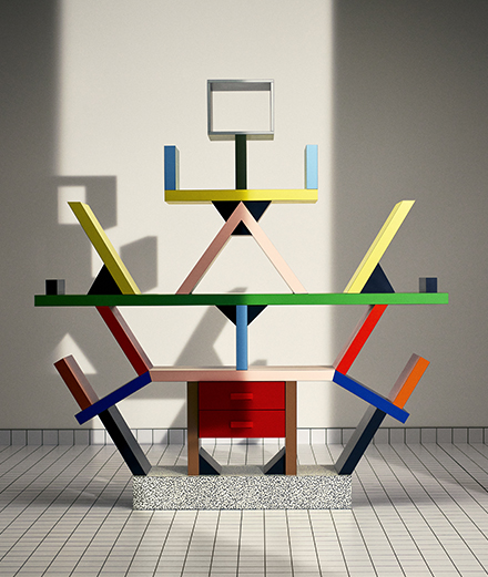 Through an exhibition and capsule collection created exclusively for its Parisian shop Rive Droite, Saint Laurent pays tribute to the postmodern and colourful design of the Memphis Group, the iconic Milanese collective founded in 1981 by Ettore Sottsass, which is celebrating its 40th anniversary this year.