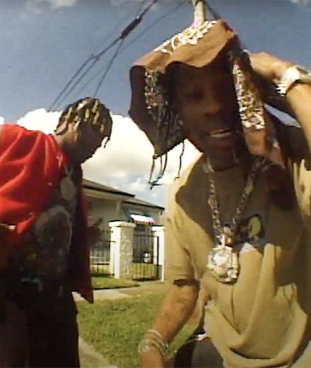 Don Toliver and Travis Scott strut their stuff in their Lamborghini in an old school music video