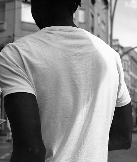 The constraints he sets himself, which entirely contradict the usual lightness and freedom of street photography, require a reactivity that results in a cataloguing of behaviour, gesture and attitude where nothing is left to chance. In certain shots we discover a whole range of human backs – sweaty, draped in geometric patterns or affirmative folds; in others, less ab- stract fragments of bodies and situations, interspersed to produce a more narrative effect, but equally banal and com- monplace. Faces are almost entirely absent from these im- ages, and the street seems to have all but disappeared too. What we are left with are tightly framed shots, similar to his early series of façades, that draw in the gaze. For Hoffmann, it is not so much a question of making a typological inventory of behavioral codes in a given environment as of following and adapting to its minute movements.