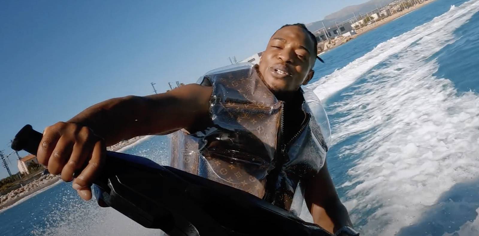 Niska pilots a jet-ski in a Vuitton life jacket in her new music video