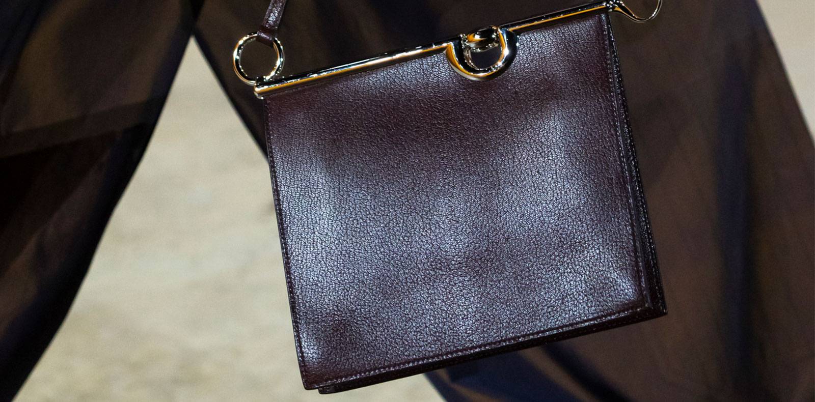 This satin-finish everyday piece, with its streamlined shape—somewhere between luxury satchel and ultra-practical tote—once again places the Italian house among the season’s top accessories.