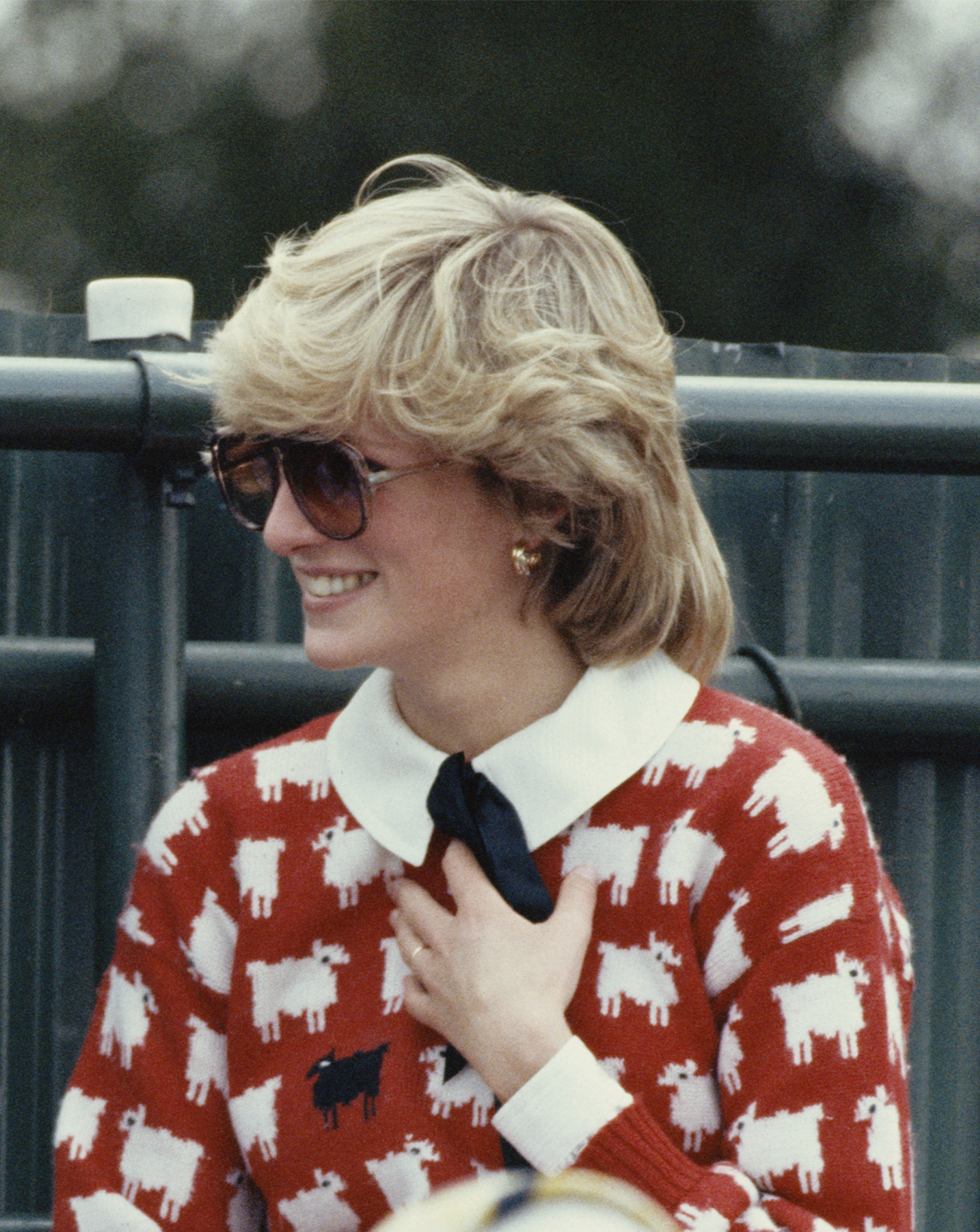 In June 1981, the 19-year-old Lady Diana Spencer had just announced her engagement to Prince Charles a few months earlier. Shy and reserved at the time, she did not display the self-confidence of the future Lady Di, who would sport iconic looks throughout the 1980s and 1990s. Yet, she was already the center of attention of the British and foreign press, her every move and public appearances being scrutinized and photographed – like the polo match she attended in Windsor to watch her fiancé play. Contrasting with the flowery skirts and formal ensembles worn by the royal family on these types of outings, the princess opted for a red, sheep-print jumper. Given as an engagement present, the design of the piece seemed as insignificant as it was childish at first sight… Except that, among the white sheep, a black one stood out. The next day, newspapers headlined that the jumper represented the status of the Princess status metaphorically, a young Diana Spencer lost among the protocols and coldness of the British monarchy. She was the black sheep of the family. While it remains difficult for experts to confirm whether or not the jumper had such a symbolic meaning for Lady Di at the time, that same public appearance was the starting point of her inimitable style, and foreshadowed the importance she would attach to clothing in each of her future appearances.