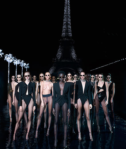 Photographed at the highly memorable spring-summer 2019 runway show held in Paris and during which the models walked over a thin layer of water illuminated by the Eiffel Tower, the images of Vanessa Beecroft’s performance for Saint Laurent will be exhibited between the 1st and 15th December during Miami Art Basel at the Museum Garage and the Paradise Plaza.