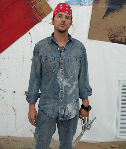 This October, Sterling Ruby will be showing simultaneously in three Parisian locations during FIAC: the two Gagosian Gallery spaces, as well as the Musée de la Chasse et de la Nature in the Marais. Probably one of the most ambitious artists of his generation, Ruby is a polymath who likes to try out every possible technique and medium: painting, ceramic, sculpture (in both epoxy and bronze), collage, drawing, textile, video and even fashion, as evidenced by the menswear collection he designed with Raf Simons. Born in 1972 at an American army base in Bitburg, Germany, to an American father and a Dutch mother, he currently lives in Los Angeles where he runs one of the largest artist’s studios in the city. His work is concerned with many themes, penchants and ideas, among them urban sociology, art history, social constraints, architecture, graffiti, minimalism and craftsmanship. The new pieces he will be showing in the Gagosian’s Le Bourget space are monumental ready-mades comprising parts of U.S.-navy submarines, while in the Rue de Ponthieu space he’ll be exhibiting new paintings made using the technique of frottage, in contrast to his usual spray-paint work. Finally, at the Musée de la Chasse et de la Nature, Ruby will create an installation of giant functioning woodstoves in the courtyard. Numéro caught up with him just after his move to new premises in downtown Los Angeles.