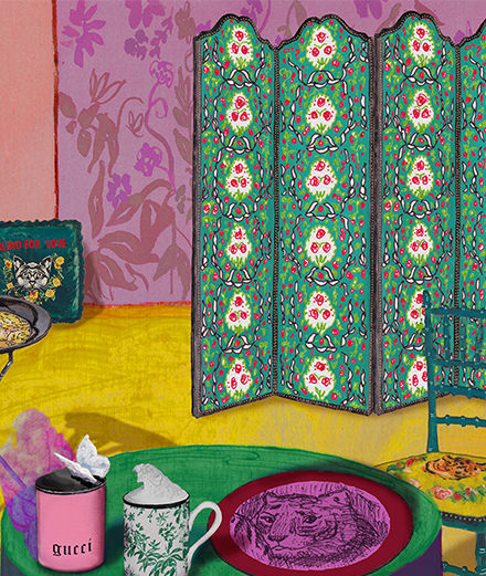 With his first furniture collection Gucci Décor, Alessandro Michele gives his flamboyant retro-futurism touch to interiors.