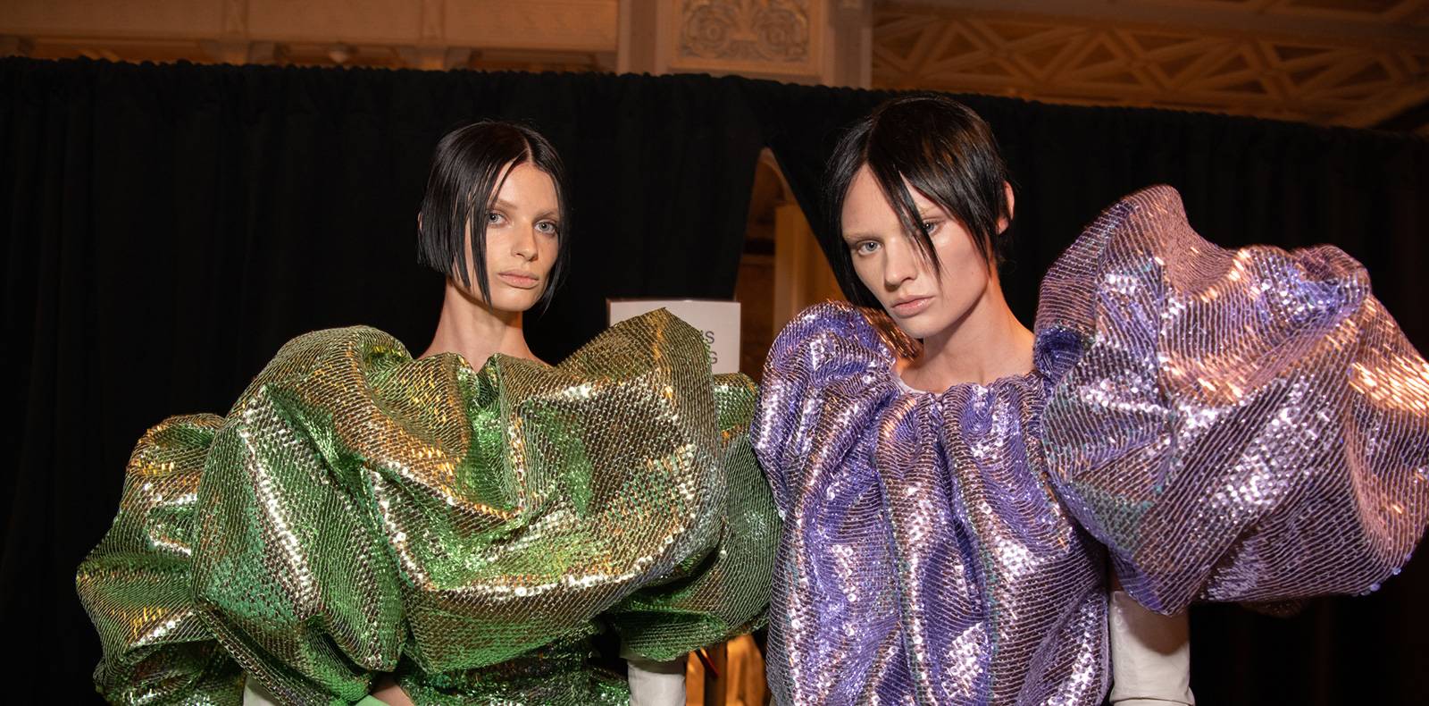 Chacun des 16 looks d’Alexander McQueen distille une allure à la fois élégante et rock, invitant aussi bien des robes de bal, des tailleurs cintrés que des vestes de biker en cuir. Point commun à tous : coupe impeccable et détails recherchés. À l’image de la collection homme automne-hiver 2021 présentée le 20 mai, qui cultivait elle aussi les lignes affûtées et une grande précision. L’esprit contemporain émane du savant mélange des matières comme la soie, le cuir et le denim. La directrice artistique opte aussi pour de l’ampleur, avec des épaules bouffantes et des manches façon bomber.
