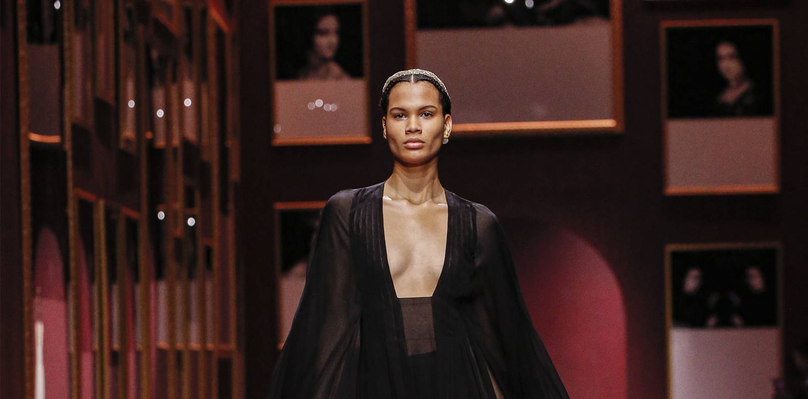 Pour clore son défile, la mannequin Kristen McMenamy déambule dans une robe qui laisse entrevoir un sein dissimulé uniquement par sa longue chevelure blanche. Une autre référence à la Renaissance, période à laquelle le décolleté occupait une place majeure, quitte à laisser un sein en dehors. De quoi affirmer une nouvelle muse ? “J’essaye d’en trouver une nouvelle, mais c’est très difficile pour moi de remplacer celle que j’avais”, confie Andreas Kronthaler visiblement ému. En attendant, il fait vivre avec dextérité et créativité la mémoire de Vivienne Westwood, empruntant une citation à l’auteur américain Henry James : “Une tradition ne reste vivante que si quelque chose y est ajouté.”