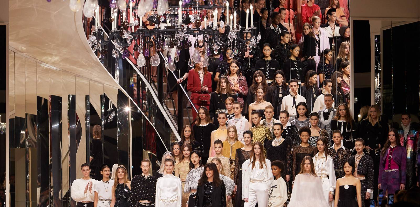 Cette collection enveloppante joue des contrastes entre des silhouettes aux coupes structurées ou des pièces en mailles fluides. Des jupes fendues ou portefeuilles, vestes cintrées et manteaux 3/4 aux coupes droites se déclinent dans une laine presque rigide tandis que des cardigans en grosses mailles, des robes coupées en biais et des ensembles tops et jupes en mailles torsadées dégoulinent sur la silhouette. Le cuir s’invite également au sein de cette collection sur une robe chemise soupe ou un trench bleu nuit élégant et mystérieux. Le tie-and-dye se retrouve sur des manches ou des ourlets de robes tandis que des imprimés abstraits habillent des col roulés moulants ou des robes amples. Des pantoufles en peau lainée ou rembourrées apportent une touche nonchalante à une collection contemporaine et optismiste.