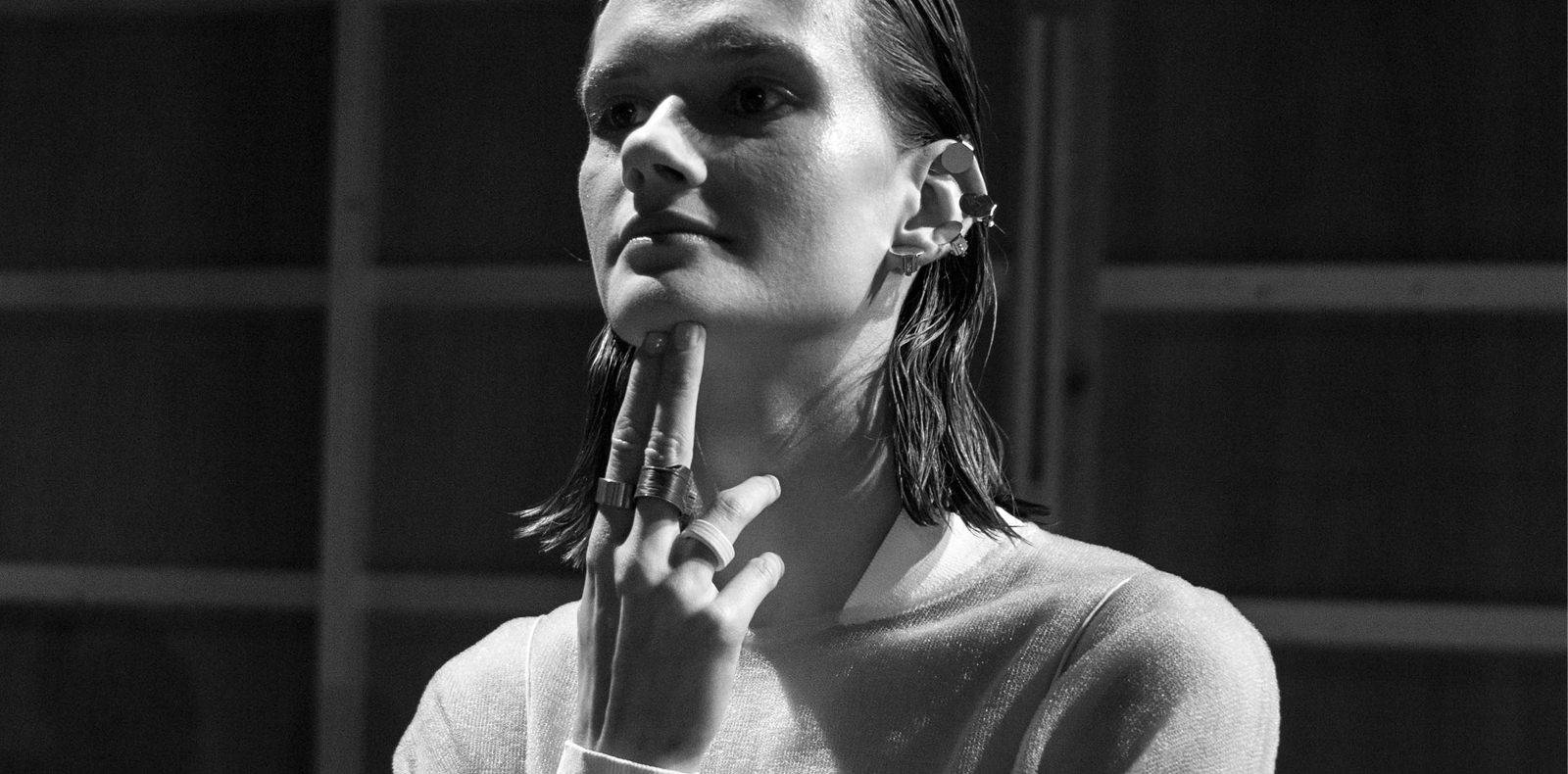 Semblable à une pluie étincelante venant illuminer cette obscurité, des gouttes dorées parsèment quelques vestes et manteaux, tandis que de fins pendentifs en or ornent les torses des mannequins et de discrètes chaînes dépassent de leurs poches. Leurs vestiaires se voient par ailleurs complétés par d’élégantes bottes en cuir noir à lourdes boucles dorées. “L’homme Rochas est nocturne et légèrement décadent, mais pas sombre”, déclare Federico Curradi lui-même. “Il brille, subtilement, de l’intérieur”.